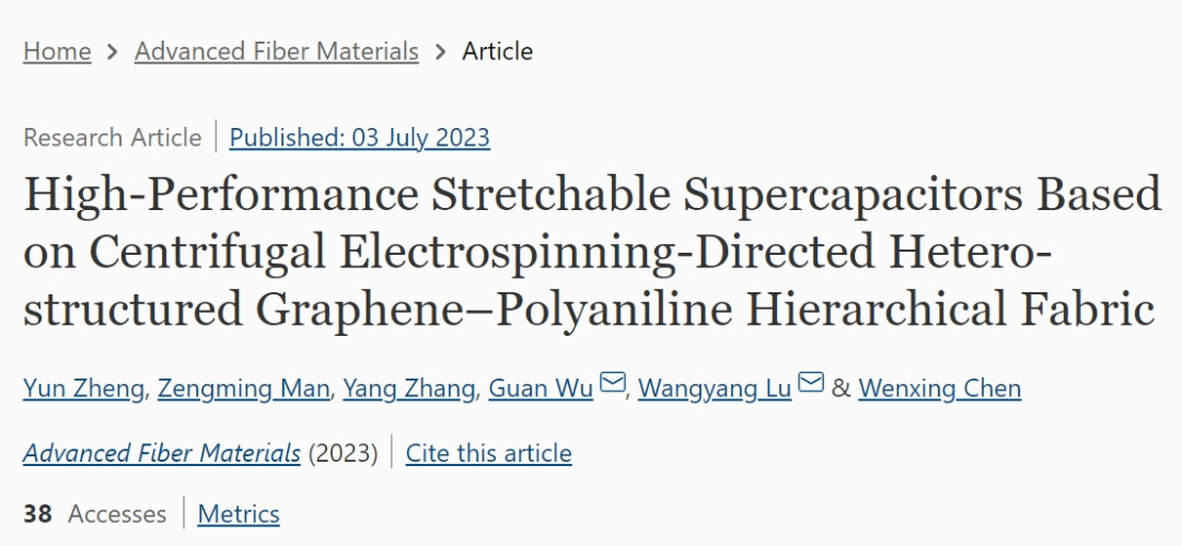 武观研究员团队,在高能量密度与可形变纤维基超级电容器领域取得了系统原创性成果,陆续在Advanced Materials、Angewandte Chemie International Edition、Advanced Fiber Materials重要刊物上发表学术论文,为可穿戴新能源技术与智能纺织品的创新发展与产业化奠定材料基础。