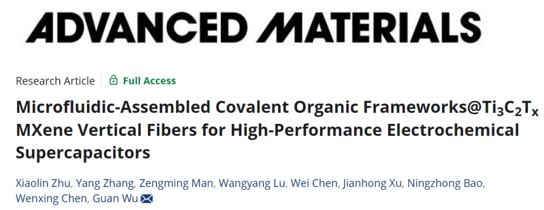 微流控纺丝一步法制备VA-Ti3C2Tx@COF-LZU1纤维用于高能量密度超级电容器