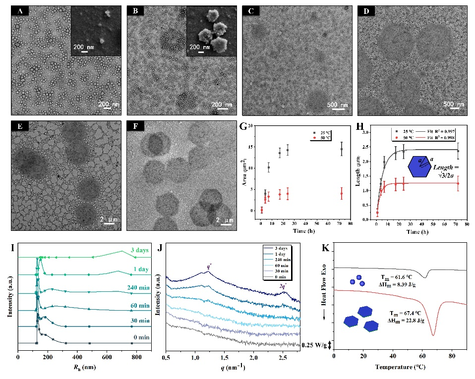 图2. 二维片状胶束的形貌和结构表征