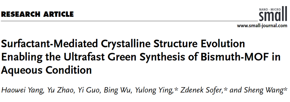 青年教师应玉龙副教授和王晟教授团队在前期铋基金属有机骨架形貌调控研究的基础上,提出了一种新的策略:利用表面活性剂为结构诱导剂,在水相条件下伴随超声辐照构建具有复杂拓扑结构的铋基金属有机骨架CAU-17。该成果发表在国际高水平期刊《Small》。厂长资源