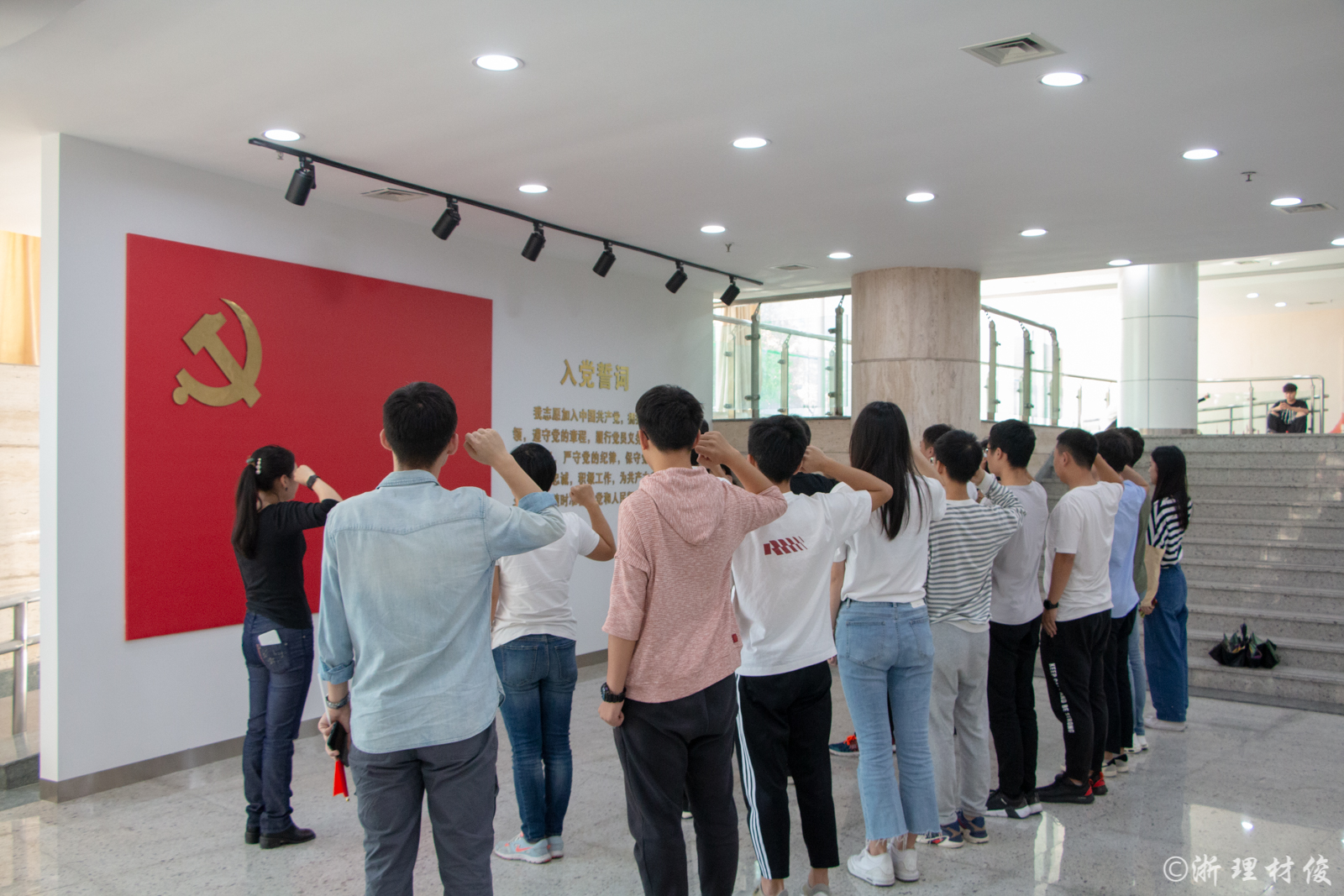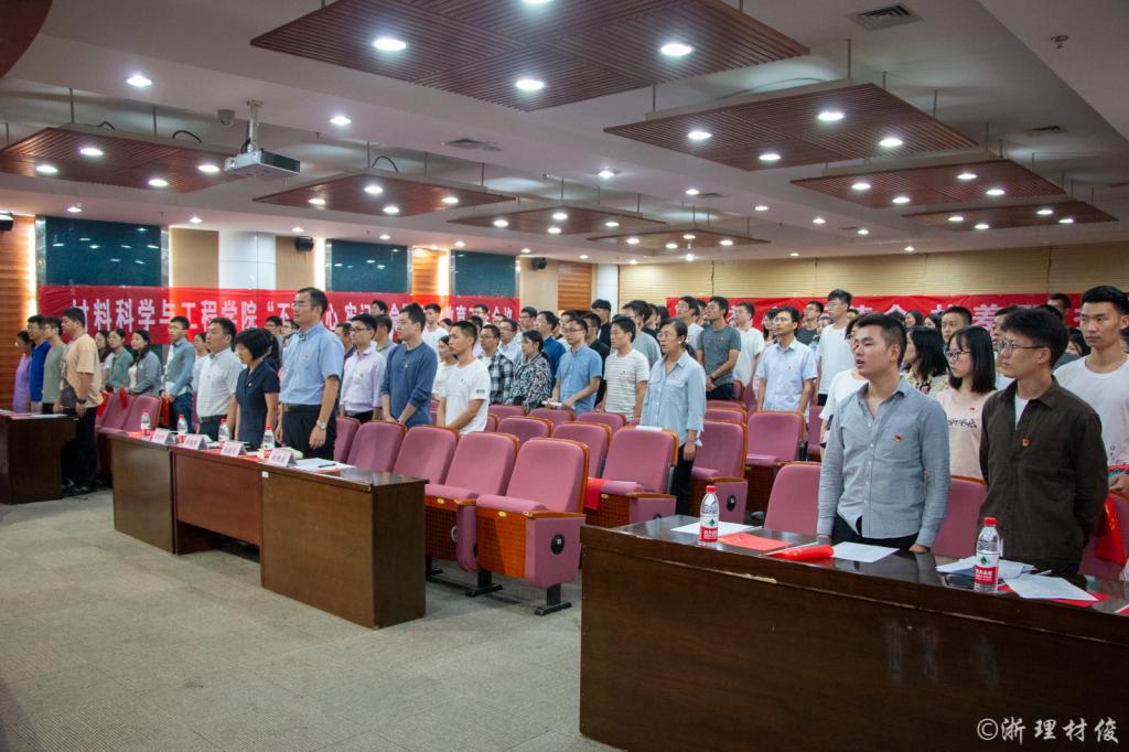 会议最后,全体师生党员合唱《我和我的祖国》,在新中国成立70周年之际,用歌声、热情和豪迈唱出对祖国的热爱!会议结束后,全体师生党员来到红色文化讲习馆进行现场教学和重温入党誓词。各位党员在一幅幅展板前参观、学习、交流,并在党旗前重温了入党誓词、通过本次会议的召开和现场教学,全院师生党员、各党支部进一步凝聚共识,明确了主题教育的目标任务和重大意义,从而在工作和学习中以更加优异的成绩献礼新中国成立70周年!