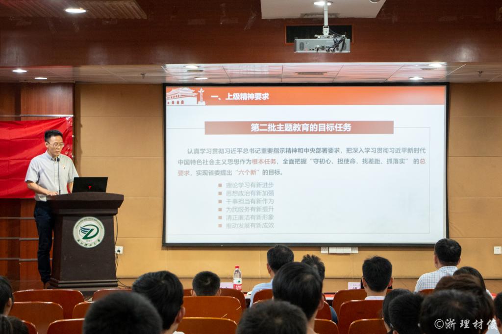 党委进行主题教育工作布置,从开展主题教育的重大意义、主题教育的目标任务、总体安排和具体工作、工作要求四个方面进行工作部署。强调要确保主题教育每个环节都要做到实效,着实开展“初心、使命、担当”为主题的学习教育,重点指出问题检视需要通过多种方式深入基层广泛的征求意见建议,以及认真对标检视反思。并要求全体党员同志要将学习教育、调查研究、检视问题、整改落实贯穿全过程。