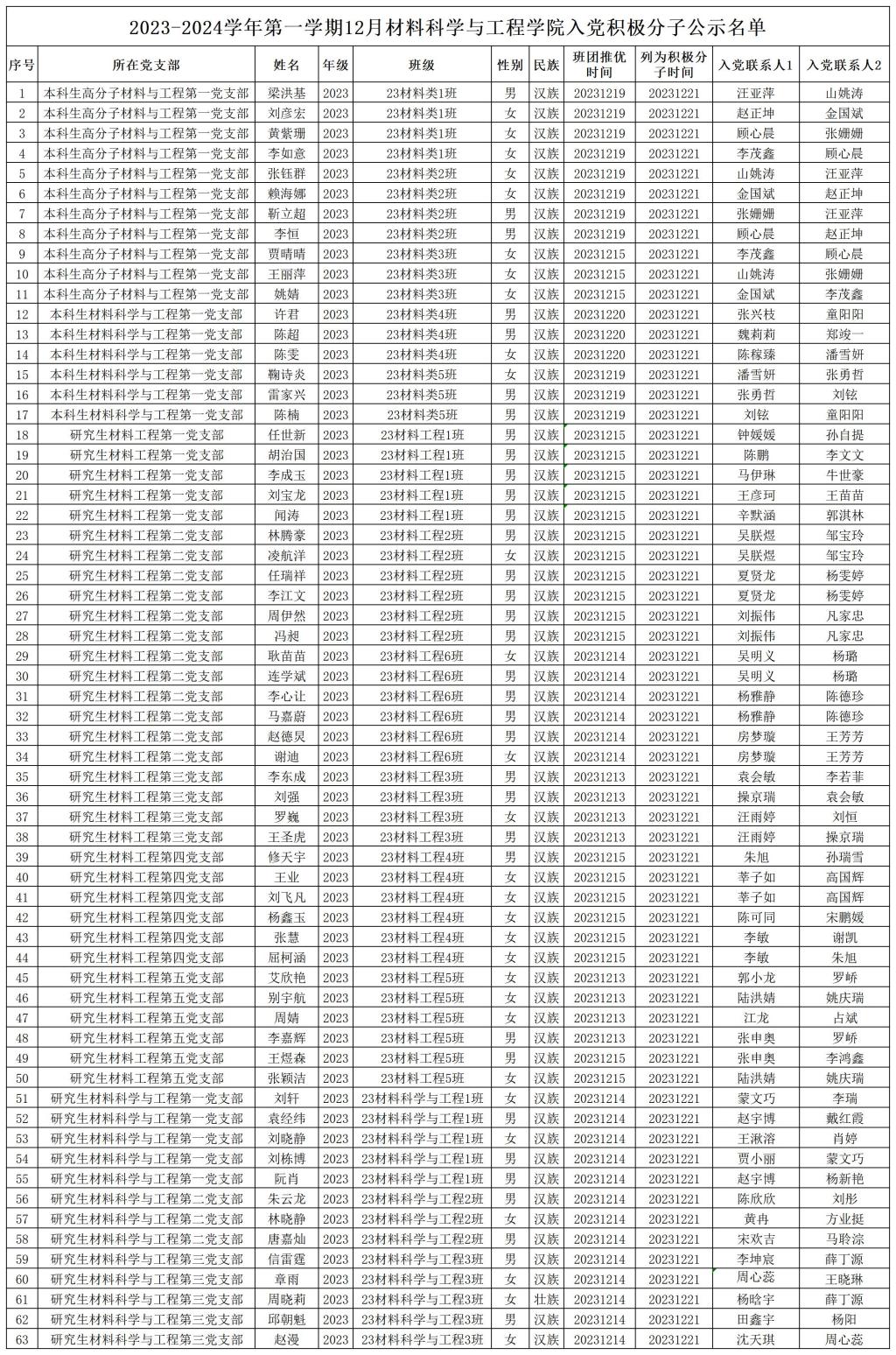 党建动态 当前位置: 厂长资源 > 党建思政 > 党建动态 > 正文 厂长资源 2023年12月入党积极分子名单公示 作者:时间:2023-12-21浏览次数: 各党支部、团支部: 经各团支部“推优”、厂长资源 团委审核以及各党支部委员会讨论研究决定,确定梁洪基等63位同志为入党积极分子,现将名单公示如下: 公示时间:12月21日—12月23日,公示期内,凡对以上同志确定为入党积极分子有意见者,请及时以口头或书面的形式向厂长资源 党委或党支部反映问题。 联系电话:86845861,联系人:鲁宏浩。 E-mail:[email protected] ;办公室地址:24-404。 厂长资源 党委 2023年12月21日