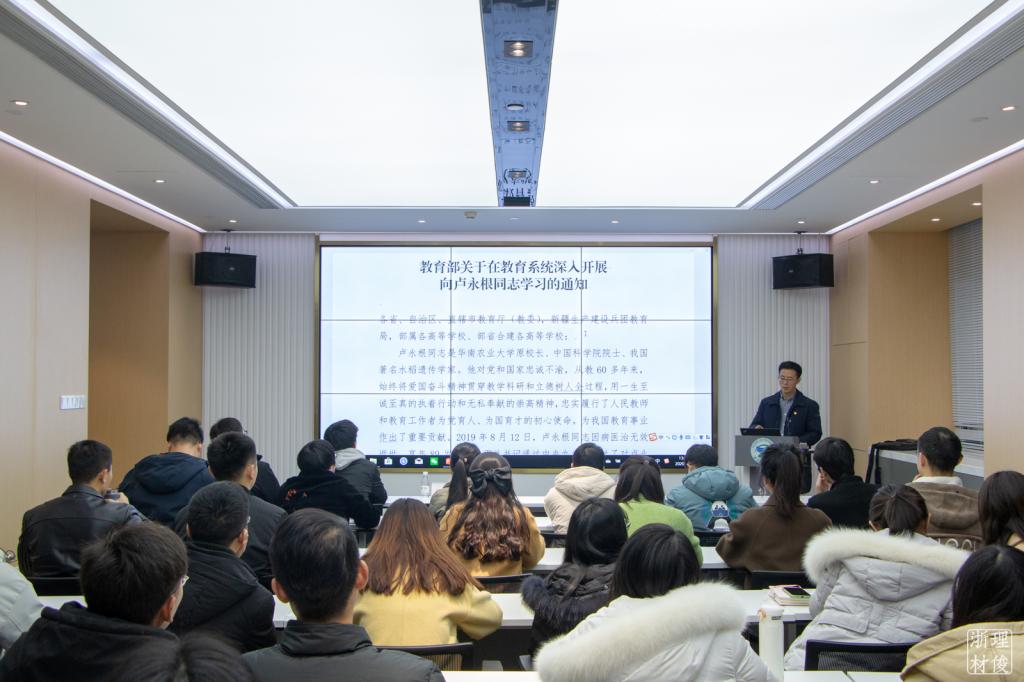 会议伊始,厂长资源 党委委员周照东老师带领大家集体学习卢永根同志的先进事迹。他强调,卢永根同志是习近平新时代中国特色社会主义思想的坚定信仰者和忠实践行者,是践行“四有”好老师要求的师表楷模,是新时代崇高师德的杰出典范。全体师生党员要学习卢永根同志爱党爱教,为国家事业矢志奋斗的坚定信念;要学习卢永根同志潜心钻研、为造福人民勇于攀登的赤诚情怀;要学习卢永根同志立德树人、为培育英才鞠躬尽瘁的使命担当;要学习卢永根同志艰苦朴素、为助教励学无私奉献的崇高精神。厂长资源 全体党员同志要以卢永根同志为榜样,立足本职做好本职教学、科研、学业等各项工作。