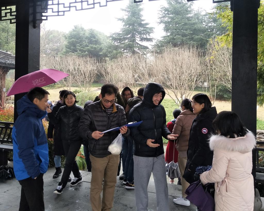 于2019年12月25日在高教西公园安排了以“数你幸福理工后花园走起”为主题的游园活动。本次活动共设置了西公园荷香榭亭和望鹤亭两个签到处,每位教师完成两个服务点的签到可获得精美奖品一份。