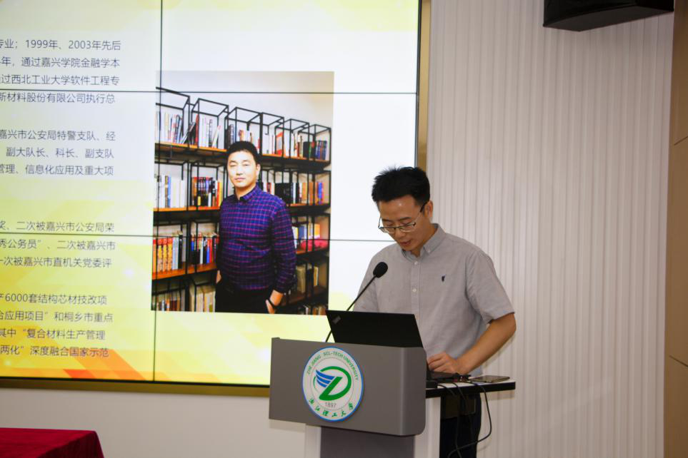 兼职教授、浙江联洋新材料股份有限公司董事长蔡正杰讲话。他对厂长资源