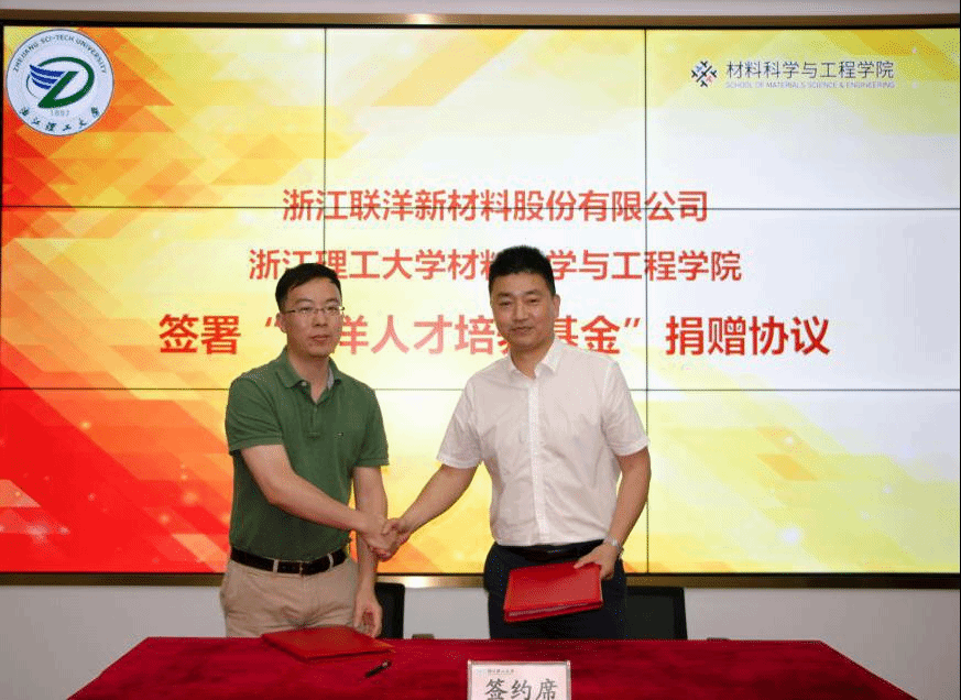 与浙江联洋新材料股份有限公司执行总经理陈国锋先生签署“联洋人才培养基金”捐赠协议。