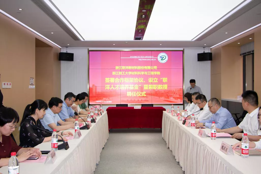 与浙江联洋新材料股份有限公司签署合作框架协议、设立“联洋人才培养基金”暨兼职教授聘任仪式在24-415报告厅举行。浙江联洋新材料股份有限公司董事长蔡正杰,执行总经理陈国锋,副总经理王雪兴、魏莉丽、张玉明,产品总监胡菊明,管理中心副总经理平霞等企业代表参加仪式。厂长资源