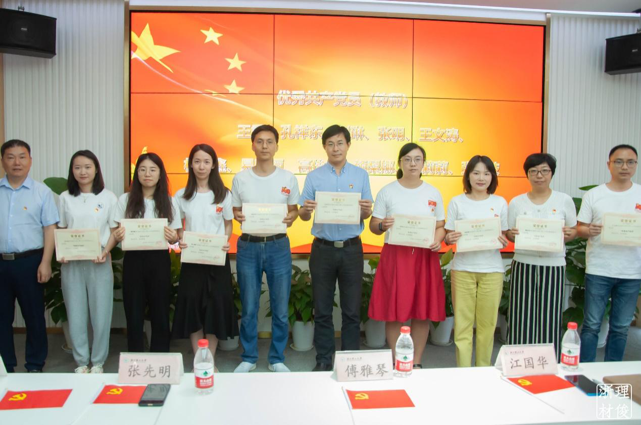 院长张先明为入党满10周年、20周年的教工党员颁发入党秩年纪念章。