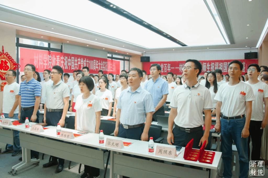 最后,全体与会党员齐声高唱《没有共产党就没有新中国》,用洪亮的歌声一起为党的百年华诞庆生。