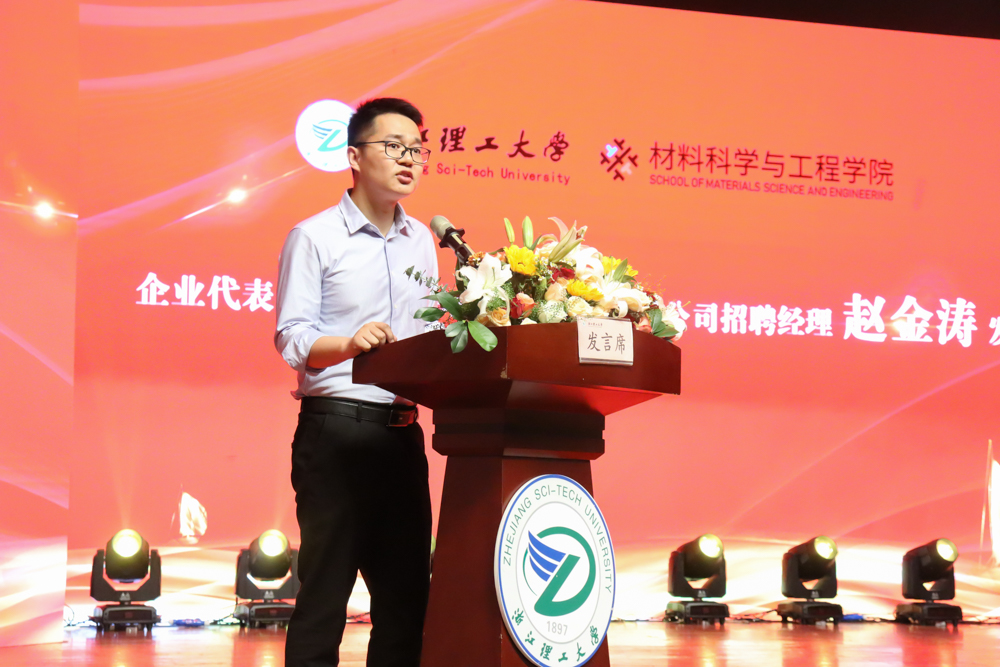 企业代表、宁波舜宇车载光学技术有限公司招聘经理赵金涛对教授同学们学业和负责大家就业的老师表达了最真挚的祝福。并在毕业生正式成为“社会人”之前,分享了两个小建议:要有明确的目标,有计划地工作、有计划地生活;具备持续学习的能力,要随着社会的发展、企业的发展,不断更新完善自己的知识结构。