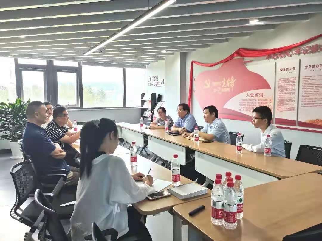 结束参观后,倪庆清院士和张先明院长一行与研究院相关领导进行了座谈交流。杨雷介绍了研究院的基本情况、研究方向以及近期工作重点,他表示研究院结合柯桥当地产业特色,重点围绕“新材料”、“绿色化”、“数字化”和“时尚化”四个方向开展科研工作,现阶段尝试将四个方向融入纺织印染行业,打造纤维新材料-纺纱-织造-面料-新染整/新风格助剂全产业链的研发体系,并利用“数字化”推动传统产业升级。他希望通过科技攻关,推出一批具有示范效应的产品或技术,以实现成果转化落地,引领行业创新。研究院总工程师沈一峰总结了当前柯桥区企业真实需求以及其多年纺织染整行业技术推进工作的相关经验。他表示,企业更侧重于关注中试化后的产品或技术在实际应用中的效果。一方面,我们要加强科技前沿领域的技术攻关、攻克一批“卡脖子”关键技术;另一方面,也要结合当地产业特色承担一批“接地气”的技术改良任务,帮助企业达到转型升级的目的。