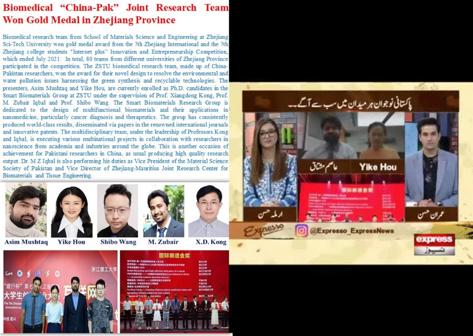 赛后,留学生Asim Mushtaq获得金奖的消息传回他的祖国巴基斯坦后,在他的家乡引起了不小的反响。巴基斯坦Experess News节目也专门报道了相关信息,同时通过直播连线的方式采访了团队成员Asim和侯亦可。这不仅是中巴两国研究人员共同努力的结果,也是中巴友谊长青的良好见证。