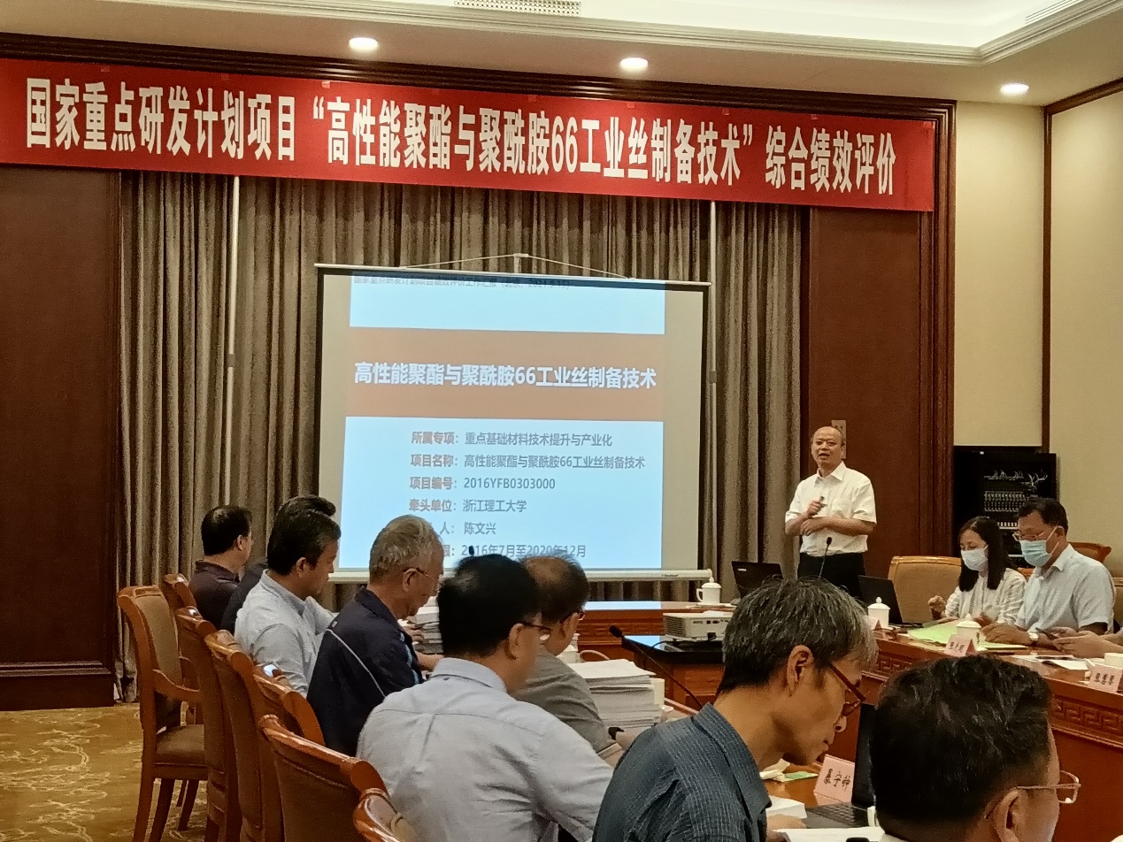 陈文兴教授团队领衔的国家重点研发计划 “高性能聚酯与聚酰胺66工业丝制备技术”项目绩效评价工作报告在北京召开。项目专家组,科技部高技术研究发展中心卞曙光副主任、材料处蒋志君处长、项目主管罗金琼,项目推荐单位代表中国纺织工业联合会科技发展部副主任张慧琴教授级高工,项目负责人陈文兴教授、校科学技术研究院常务副院长戚栋明教授及14家参与单位负责人和研究骨干共计40余人参加会议。本次项目绩效评价工作报告由蒋志君处长主持。