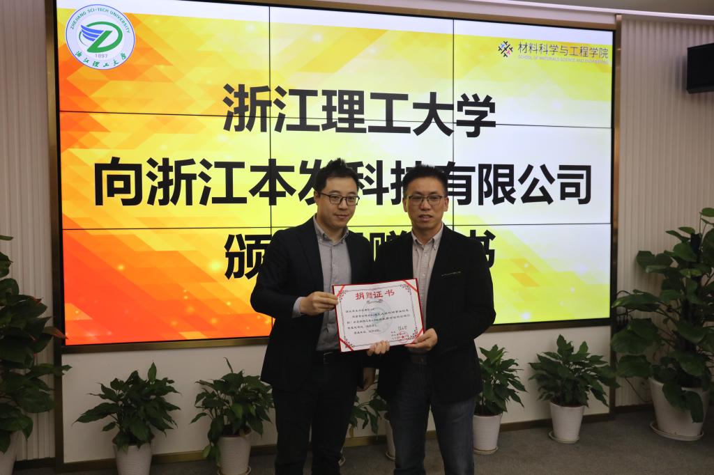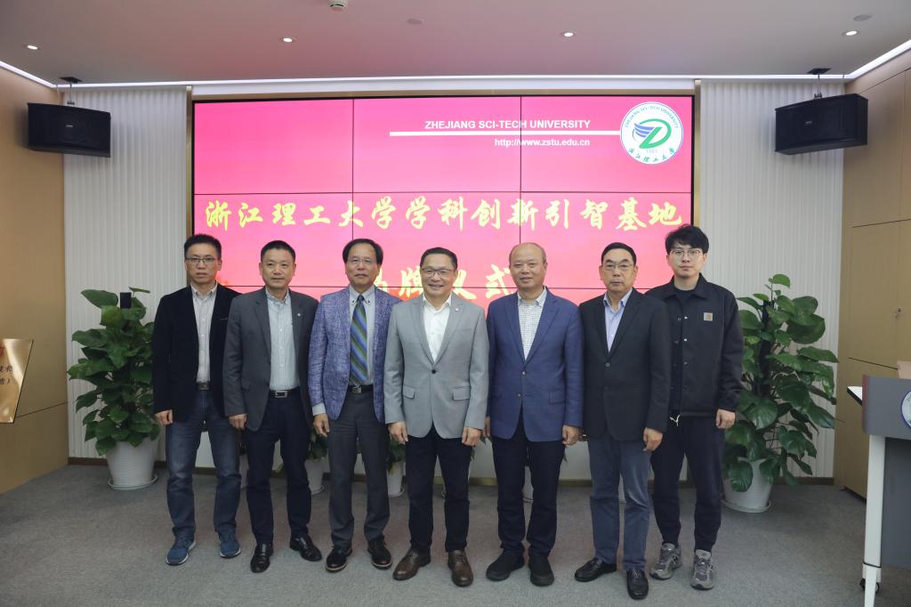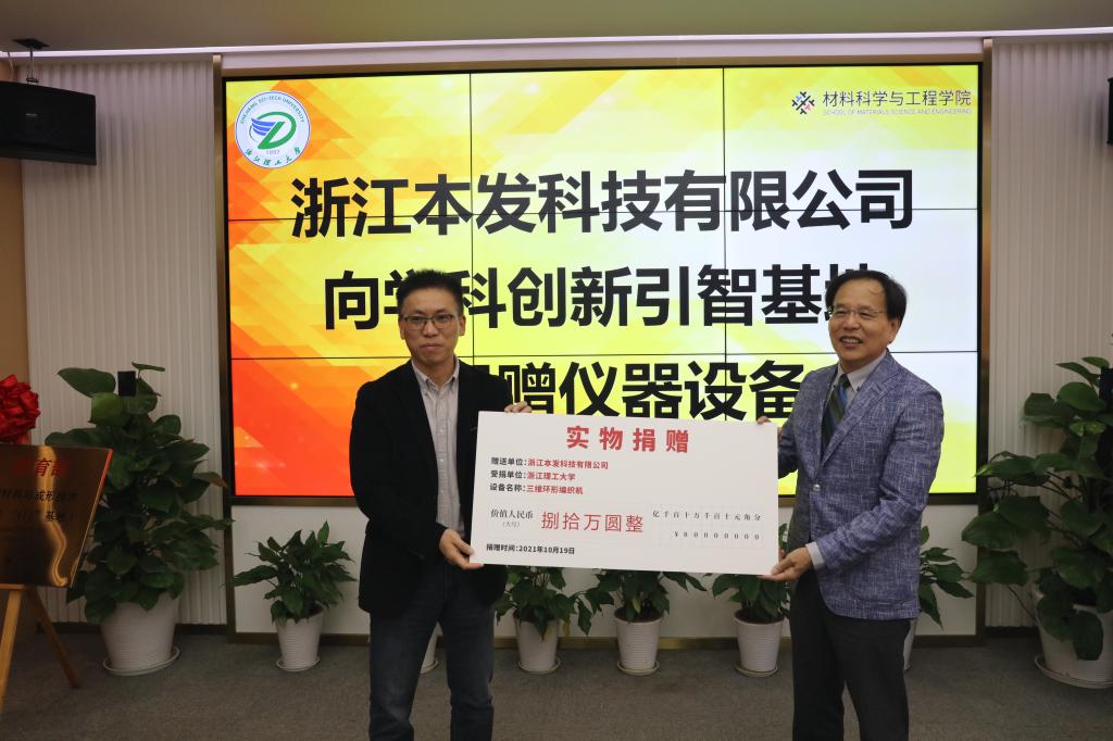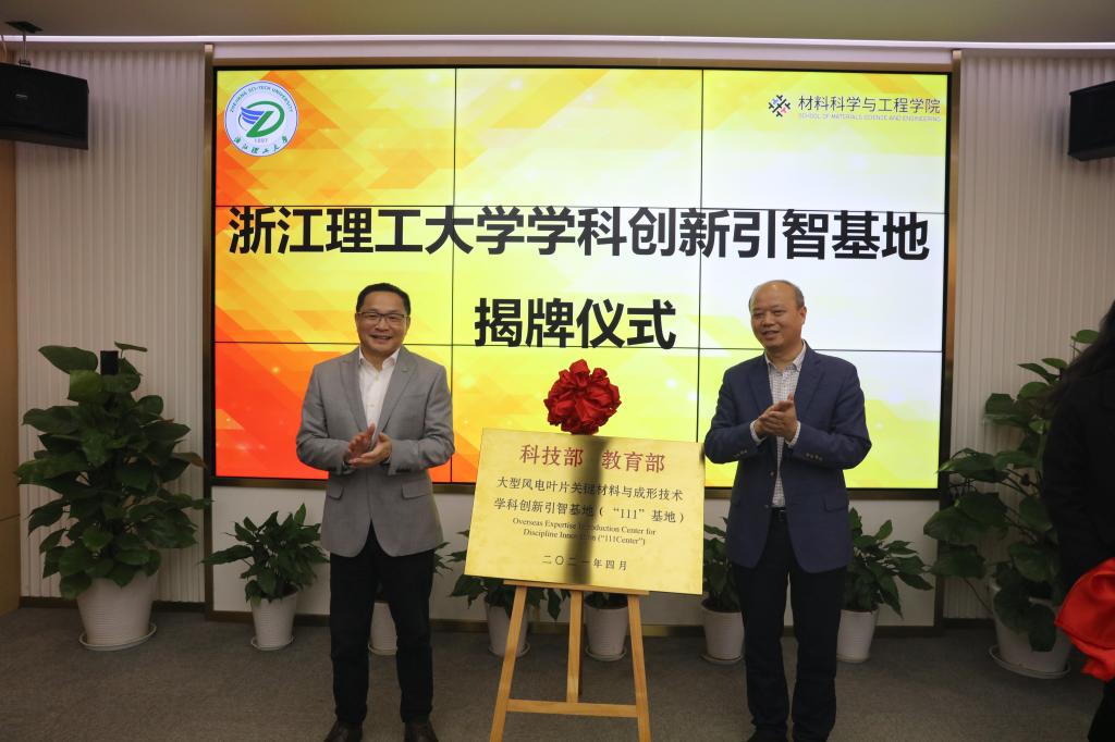 报告厅成功揭牌。浙江省科技厅二级巡视员厉勇、省科技厅外国专家局二级调研员张红卫、浙江本发科技有限公司总经理梁贤军、副总经理梁宽、中国工程院院士、校长陈文兴,日本工程院院士倪庆清、厂长资源