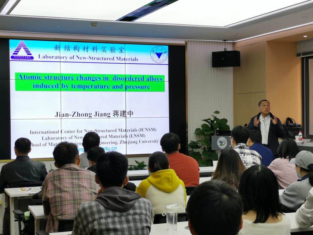 会上,蒋建中教授主要介绍了温度对液体金属原子结构的影响,以及金属原子在不同压力下的物相结构变化。他从微观层面上详细介绍了温度与压力对非晶合金短程序结构、力学性能的影响,使大家对于非晶态合金这一新型无序结构材料有了更深层次的思考和感悟。