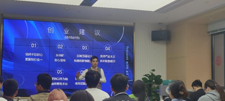 浙江电马云车科技有限公司CEO侯踊跃带来第二场报告,他结合自身成长历程,讲述了青年人创业应具备的基本素质;结合创业过程中的公司文化建设,为青年人创业提出中肯建议。他勉励同学不忘初心,知行合一,学好专业基础知识,全面提高自身素质,为将来成长、成才、创业打好坚实基础。侯总的报告金句频出,激人奋进,用生动有趣的语言给大家带来了一场精彩的报告。