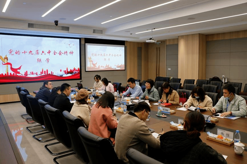 与舜宇光学科技(集团)有限公司在舜宇新基地B-1 一号会议室举行党建共同体签约揭牌暨党的十九届六中全会精神联学会议。