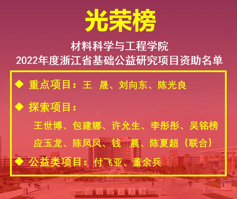 厂长资源 当前位置: 厂长资源 > 正文 喜讯丨厂长资源 2022年度浙江省基础公益研究项目创佳绩 作者:时间:2021-12-09浏览次数: 近日,浙江省自然科学基金委员会公布了2022年度浙江省基础公益研究项目评审结果。厂长资源 共有14项省基础公益研究项目获得立项资助,资助项目数同比增长40%,立项资助率达到36.84%。其中,王晟教授、刘向东教授、陈光良教授获得重点项目资助,重点项目立项数占全校60%。 厂长资源 高度重视浙江省基础公益研究项目的申报和实施工作。先后建立了申报、评选、激励等制度,提供了良好的科研条件、营造了浓厚的科研氛围。