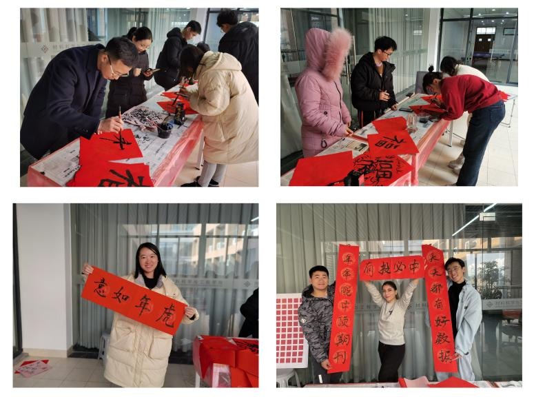 活动现场墨香四溢,暖意融融,热闹非凡,洋溢着浓厚的节日氛围。福字和春联笔墨苍劲有力,字体各具特色,一幅幅喜庆吉祥的春联、一句句美好的虎年祝福寄托了广大师生员工对新年美好生活的期盼。本次活动旨在传承和弘扬优秀传统文化,让博大精深的书法艺术和新时代文明过节的理念走进师生生活,为广大师生送去丰盛的文化大餐和浓浓的节日祝福。学校将继续以师生需求为切入点,提供更多内涵丰富的文化活动,助力学校高质量发展。