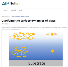 为第一完成单位。该论文被甑选为APR亮点论文(Featured / Editor's picks),并被美国物理学联合会《科学之光》(AIP Scilight)杂志以Clarifying the surface dynamics of glass为题进行了专访报道。