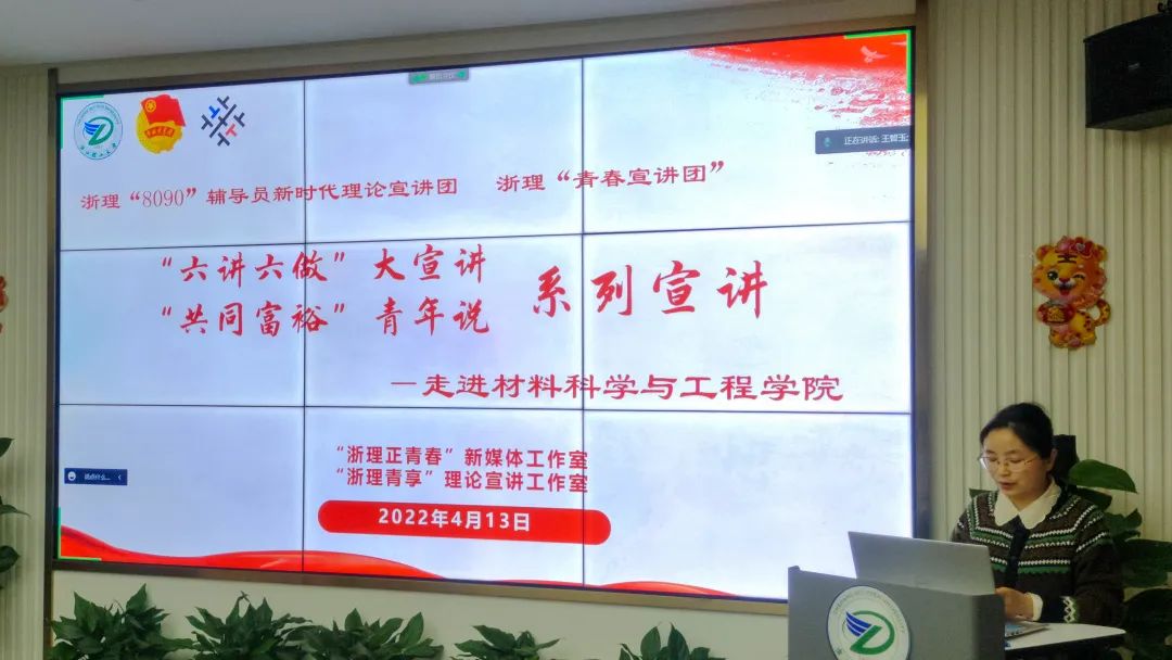 “8090”辅导员新时代理论宣讲团和浙理“青春宣讲团”联合开展的“六讲六做”大宣讲、“共同富裕”青年说系列宣讲活动走进厂长资源