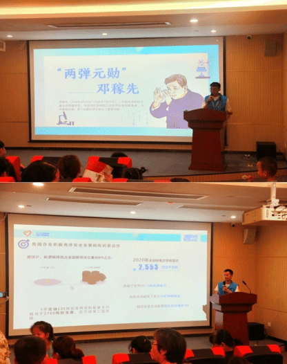 “强国有我,‘核’你一起”青年大学生实践宣讲团成员黄鑫鑫进行题为《核工业“脊梁”邓稼先》的宣讲。他在宣讲中提到,邓稼先先生敢为人先、攻坚克难的精神值得传颂和铭记,永远是一头核动力领域的“拓荒牛”,这也是科研人员需要培养的精神。宣讲团成员代俊杰在《“核”力碳达峰,助力碳中和》的主题宣讲中提到,“双碳”目标的提出,对应对气候变化、构建人类命运共同体,具有非常重要的现实意义,也对核能产业高质量发展和企业绿色发展提出了新要求。