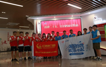 指导下的以青年师生为主体的红色文化专业宣讲团队,旨在以红色文化讲习馆为依托,采用生动活泼、喜闻乐见的多样化传播形式和应用载体,传承、传递与传播红色信仰,弘扬光荣传统,赓续红色血脉,深化“四史”学习教育,为推进红色文化基因传承接力奋斗,传递新时代浙理人的红色力量。