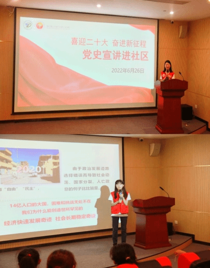 红信讲习团成员王志娟在《喜迎二十大,奋进新征程,党史宣传进社区》的主题宣讲中,用饱含深情的语言、生动鲜活的事例讲述了中国共产党带领人民站起来、富起来到强起来的百年奋斗史,引导社区的中小学生争做有志气、有骨气、有底气的新时代青少年。红信讲习团成员叶子怡以《坚持党对一切工作的领导》为主题,从青年的视角讲述坚持党对一切工作领导的重要性。她在宣讲中提到,“作为青年,应当把对祖国的热爱和党的要求统一起来;把对自我认知的审视与组织纪律的约束统一起来。”