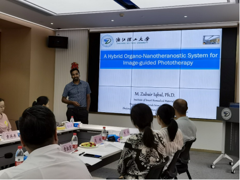的孔祥东教授、Zubair研究员、张权特聘教授、童再再副教授、赵瑞波特聘副教授、卢嘉驹特聘副教授、李瑶特聘教授等教师分别介绍了肿瘤类器官研究与应用、肿瘤诊疗探针、环糊精糖簇改性递药系统、先进医用高分子材料、人工细胞器、肿瘤纳米药物载体和多肽水凝胶等领域的研究进展。