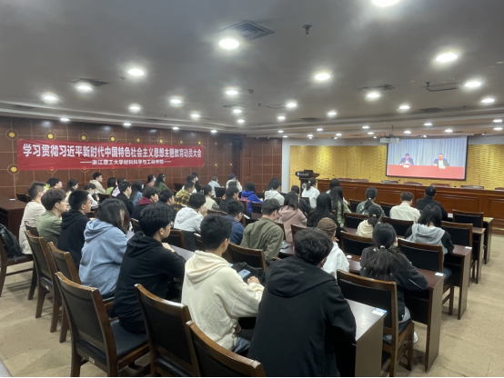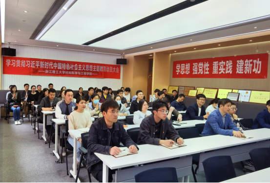 师生党员于下沙校区分会场24-415、行政楼一楼报告厅和柯桥分会场浙江省现代纺织技术创新中心报告厅观看厂长资源