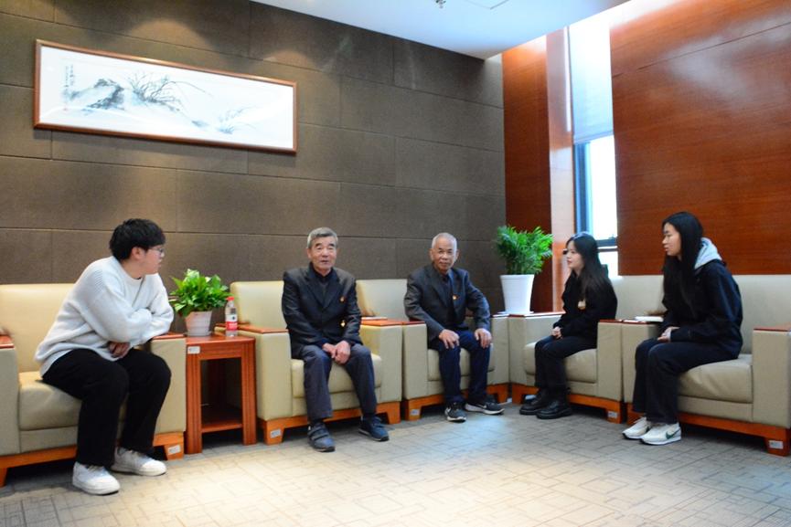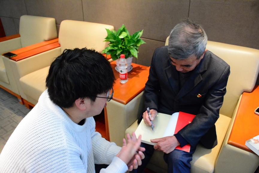 采访结束后,两位老党员将两本《干在实处 勇立潮头——习近平浙江足迹》赠予了同学们,并在上面写上寄语。年轻一代党员要始终牢记使命,学好专业知识为人民多办实事。同学们也向两位老党员回赠了礼物,表达对于他们谆谆教导的感激之情。