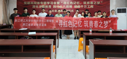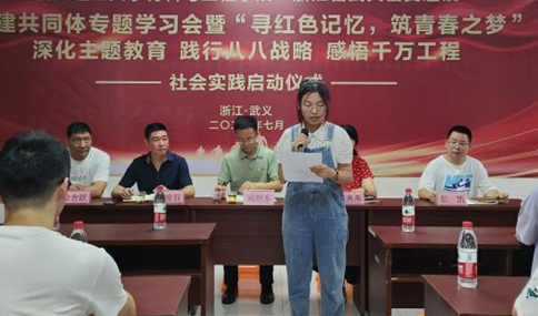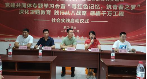 党委副书记周照东老师亲自带领其中一支“寻红色记忆,筑青春之梦”暑期社会实践团队出发,抵达了武义县茭道镇朱王村,与茭道镇领导们共同举行党建共同体专题学习会暨“寻红色记忆,筑青春之梦”深化主题教育、践行八八战略、感悟千万工程,社会实践启动仪式。