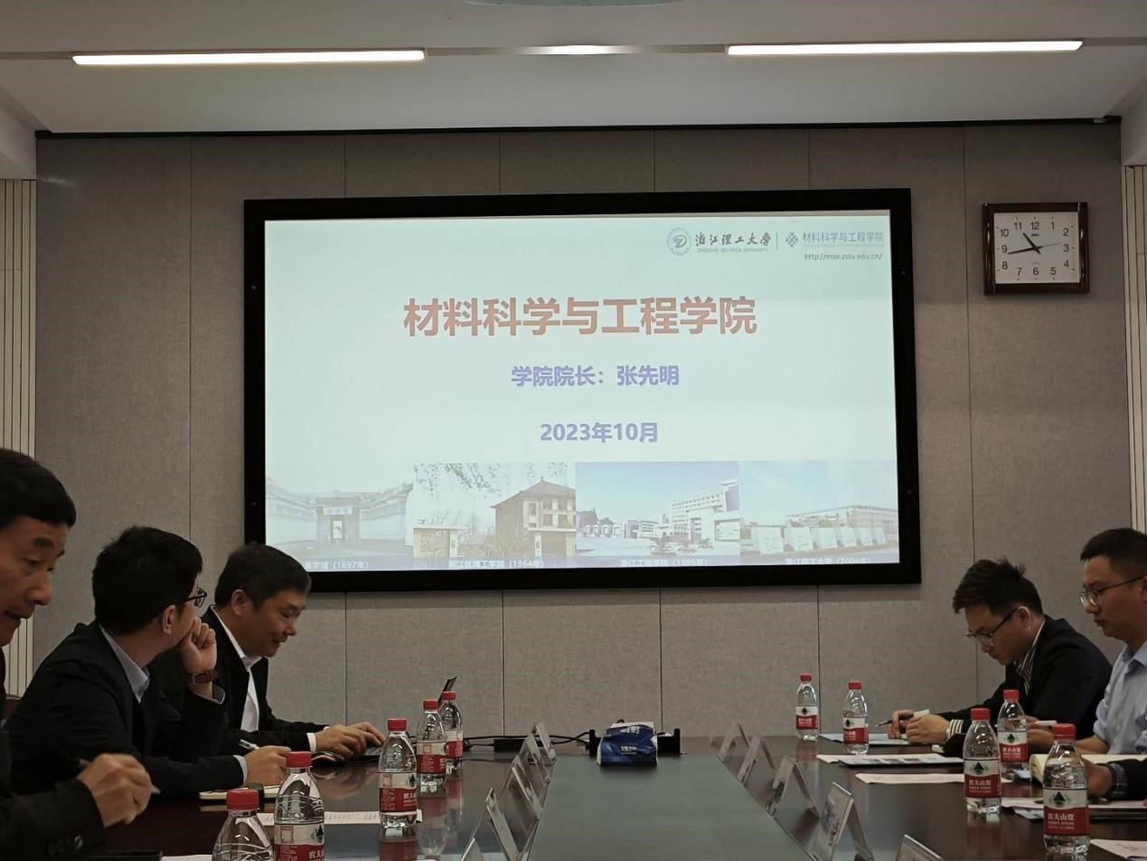 一行参观了宁波材料所展厅、公共平台测试中心,双方就科研团队建设、人才联合培养、深化校企合作等开展了深入交流。