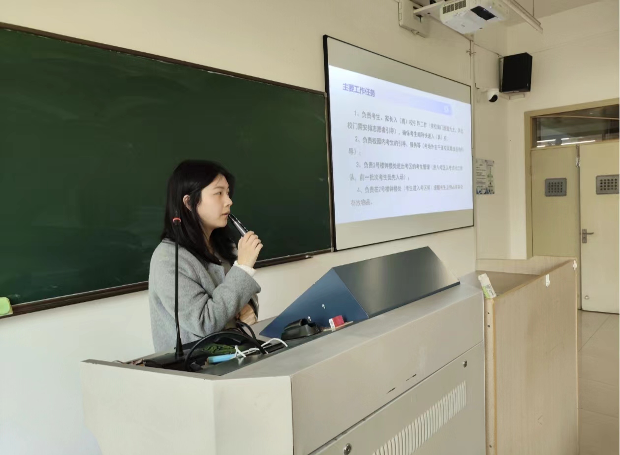 团委书记张姗姗老师对工作内容进行了提醒,工作人员要熟悉各项工作内容和流程,确保在工作中能够迅速、准确地响应考生和家长的需求。