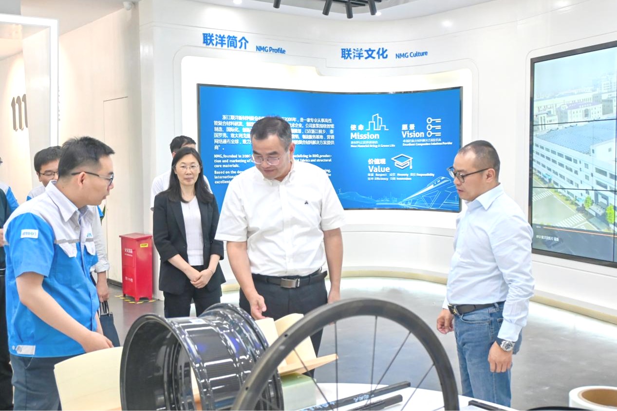 仪式前,姚菊明一行参观了浙江联洋新材料股份有限公司展厅,听取了公司厂长资源、发展历程、业务范围及战略规划等介绍,观看了联洋新材最新科研成果。