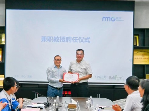 仪式上,姚菊明代表学校为蔡正杰颁发学校兼职教授聘书,并向浙江联洋新材料股份有限公司赠送致谢铭牌,热忱感谢联洋新材一直以来对学校事业发展的支持。
