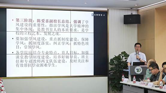 张先明指出,学风建设是人才高质量培养的重要基础,是促进学生成长成才的永恒主题,也是一项长期工作、系统工程。他强调班主任工作的重要性,需要全体师生齐心协力,各位老师要加强交流,积极探索改进学风建设的措施和手段,为学生成长成才奠定坚实的基础。仰滢强调,学风建设事关人才培养质量,要提高站位,高度重视,分析现状,谋划举措,以扎扎实实的实际行动切实推进和加强学风建设,提高人才培养质量,为学校冲刺“双一流”奠定坚实的基础。