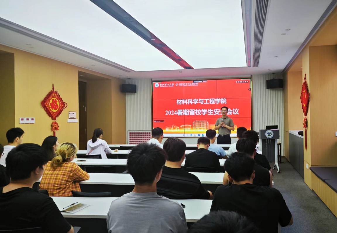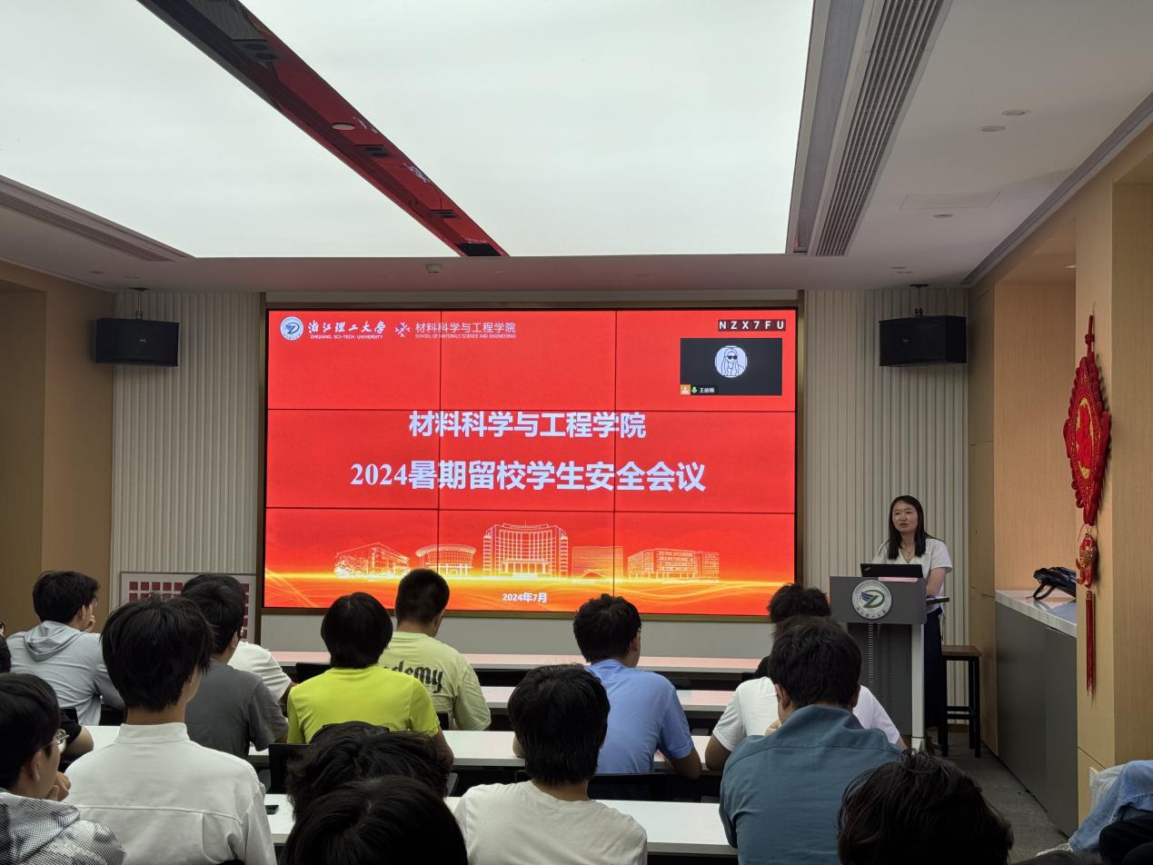 一切工作的基础,希望同学们能过个充实、安全、有意义的假期。他就暑期留校工作提出三点要求:一是要遵守校级校规,班级负责人、留校负责人要认真关注留校学生打卡及去向统计,如有夜不归宿或其他情况发生要及时上报辅导员老师;二是要提高安全意识,严格遵守实验室安全规范,注意人身安全、饮食安全、交通安全等,做好自身安全管理第一责任人;三是要合理规划时间,保持良好心态及规律的作息时间,为新学期做好充分准备。