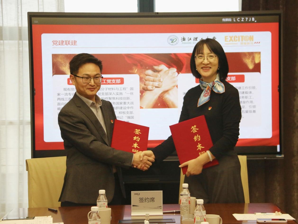高分子材料系教工党支部书记陈世昌与宁波激智科技股份有限公司党支部副书记俞瑛共同签订党建联建协议,并为铜牌揭牌。