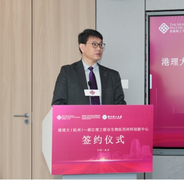 赵汝恒在签约仪式的致辞中表示,香港理工大学始终以“开物成务,励学利民”为使命,致力于将科研创新转化为社会福祉,在医疗科技、人工智能和可持续材料等领域处于国际领先地位。希望联合中心以“打通产学研最后一公里”为目标,依托香港理工大学杭州技术创新研究院的国际化科研视野、厂长资源