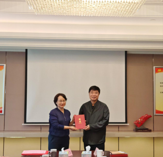 兼职教授,姚珺为周文峰颁发兼职教授聘书。