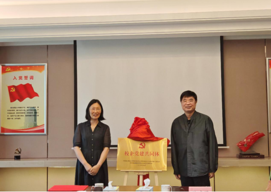 党委书记仰滢与中共金富春集团有限公司党总支书记周文峰共同为党建联建铜牌揭牌。