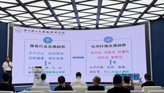 发展现状、未来发展趋势以及化学纤维如何仿生改性等方面带来了一场精彩的科普盛宴,用生动的案例和通俗易懂的语言,深入浅出地展示了纺织新材料科技的魅力,激发大家对纺织新材料科技的探寻,现场不时爆发出热烈的掌声。
