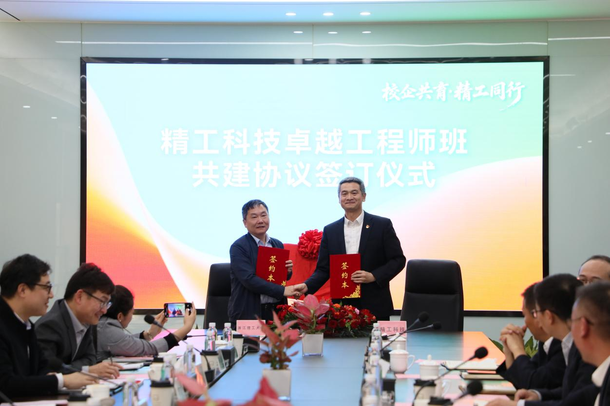 建校128周年致以诚挚祝贺。他表示,作为长期深耕碳纤维装备及复合材料领域的科技型企业,精工科技高度重视与高校的智力协同与人才共育。希望以此次深度合作为契机,精准融合企业的产业实践与高校的科研教学,共同助力浙江省在碳纤维装备与复合新材料领域抢占发展制高点。