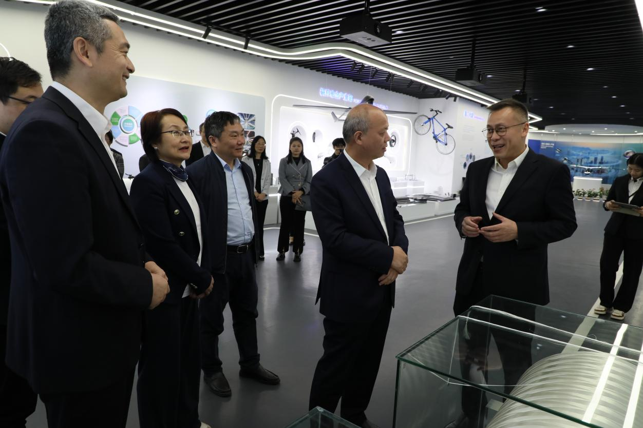 校长陈文兴院士一行在精工科技董事长孙国君的陪同下,参观了公司的先进复合材料产业化研究中心、碳纤维装备生产车间,近距离感受了公司在碳纤维新材料领域的硬核实力与创新成果。