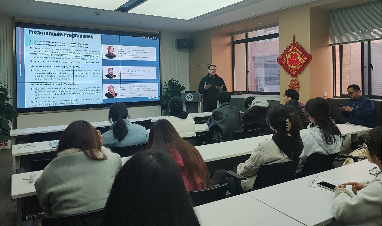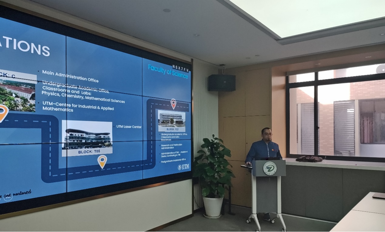 在留学项目推介环节,两位老师重点阐述了两校拟开展共建的长期学位项目与短期交流计划,涵盖申请条件、课程衔接、学分认定及科研共享等关键环节。另外,他们还详细介绍了马来西亚理工大学特色的“Living Laboratory”生活实验室与“LIVIS”实践教学平台,展示了该校将可持续发展理念融入人才培养的先进模式。