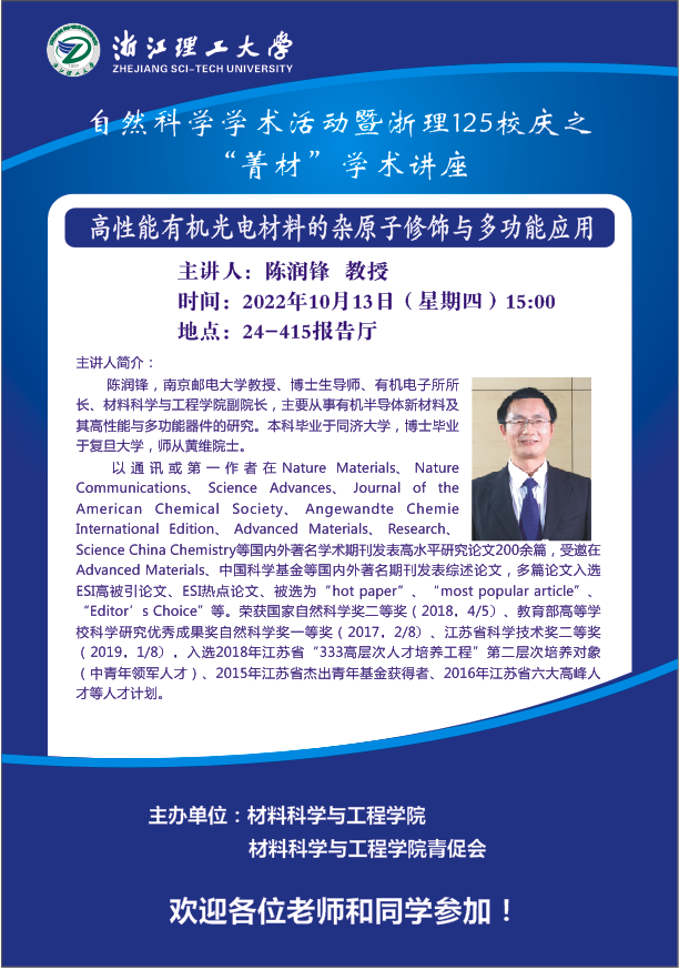 厂长资源讲座 【35】:高性能有机光电材料的杂原子修饰与多功能应用
