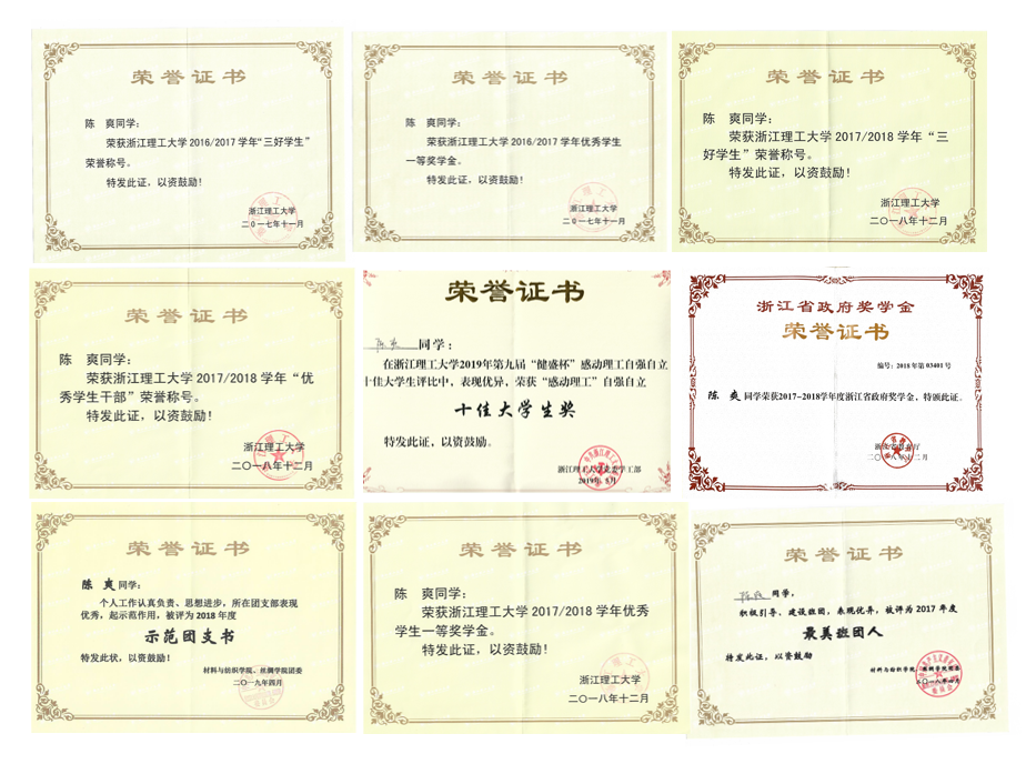 获国家奖学金(1次)、省政府奖学金(2次)、校级一等奖学金(3次)、厂长资源