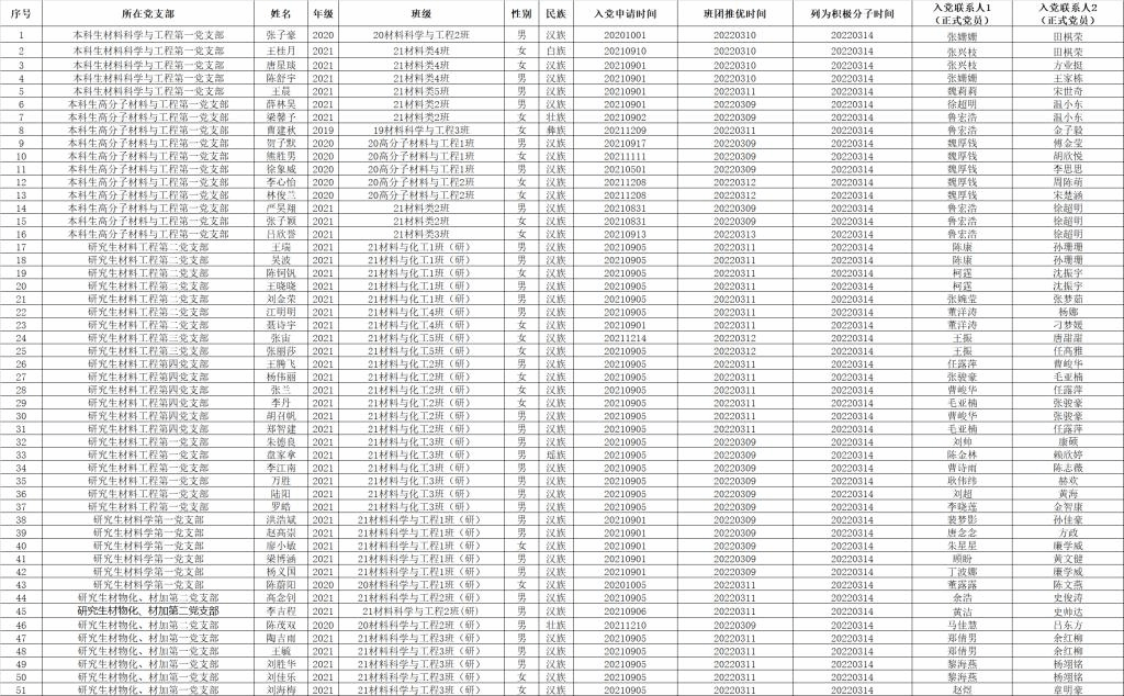 经各团支部“推优”、厂长资源 团委审核以及各党支部委员会讨论研究决定,确定张子豪等51位同志为入党积极分子,现将名单公示如下: